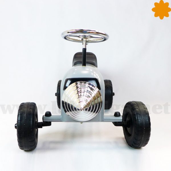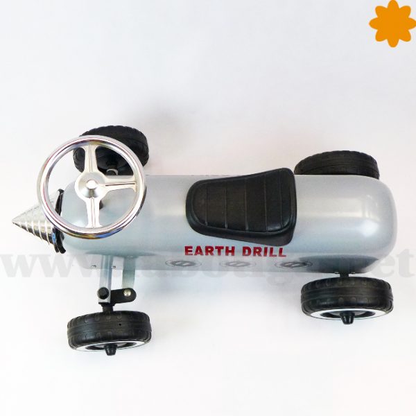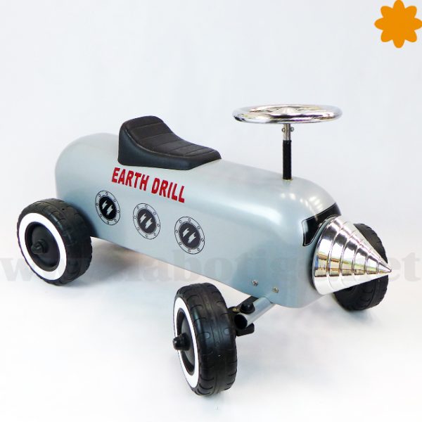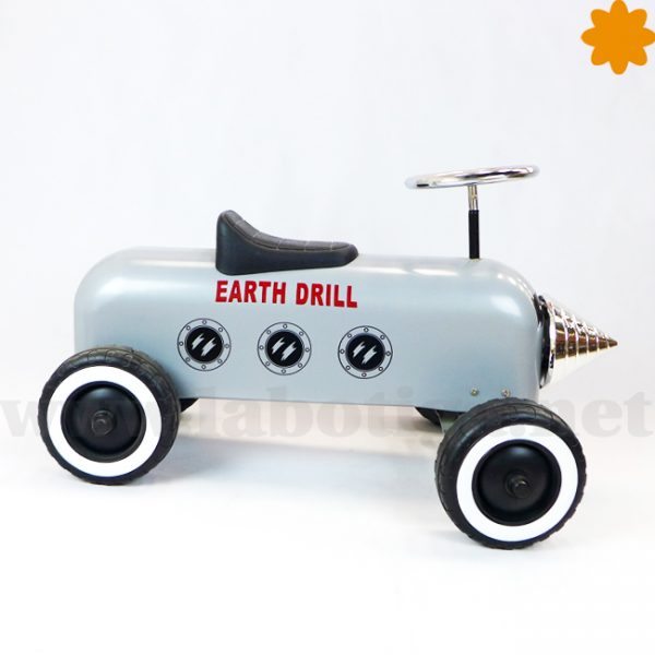 Este divertido corre pasillos está inspirado en una perforadora, es de color gris y plateado. Tiene unas letras donde pone «Heart Drill» . En la parte delantera, hay una broca de plástico plateado como si fuera de metál. El cuerpo del perforador es de metal, el asiento es de plástico duro, las ruedas de goma y las llantas son metálicas. Mide 60 cm de largo por 40 cm de ancho y 60 cm de altura. Está homologado y es perfecto para los mas pequeños de 1 a 3 años con él empiezan a tener equilibrio y aprender a coordinar los movimientos. Este producto llega embalado y desmontado, protegido en una caja de cartón original. Montarlo es realmente sencillo sólo necesitas apretar el volante y las ruedas.